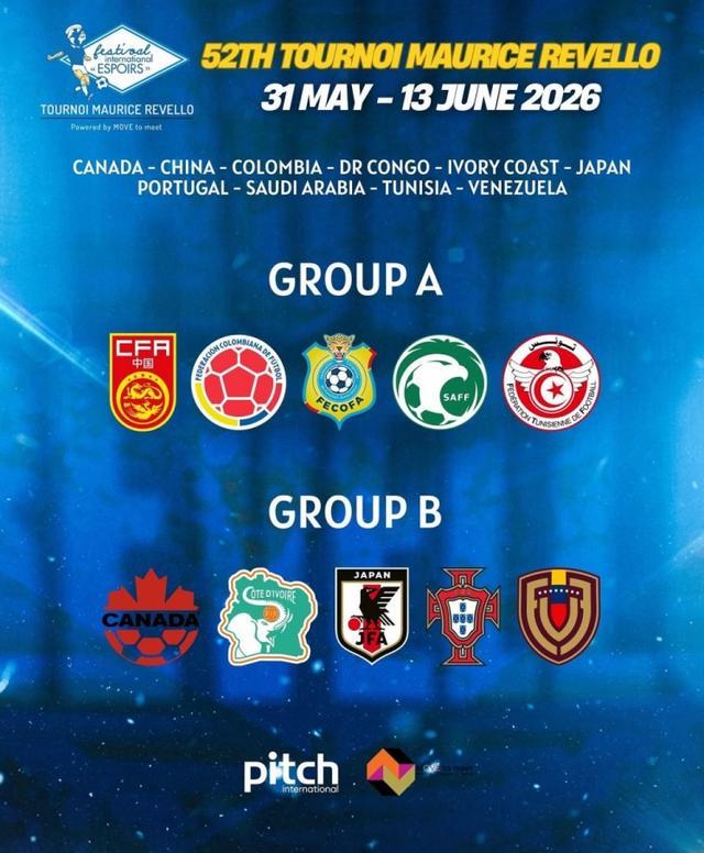 根据土伦杯官方公布的赛程及分组情况,比赛将在2026年5月31日至6月13日举行,中国队被分入A组,同组对手还有:哥伦比亚、民主刚果、沙特和突尼斯。